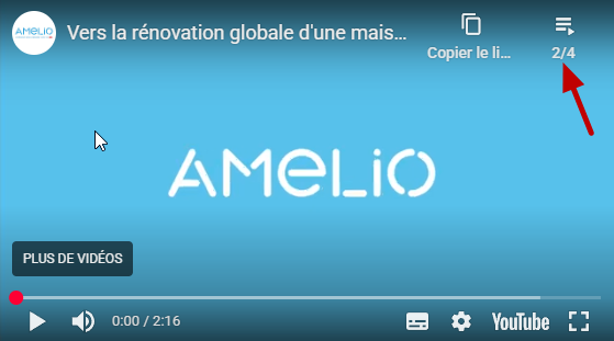 Vous pouvez passer d'une vidéo à l'autre en cliquant sur le bouton situé en haut à droite du lecteur vidéo. Pour l'afficher, il vous faut survoler la vidéo avec votre souris.